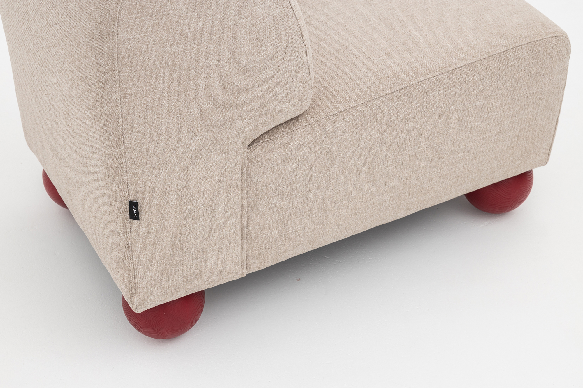Fotel MEZZO który wyewoluował z wąskiego siedziska i rozbudowania dedykowanych stopek, pięknie komponuje się z narożnikiem ARCO.